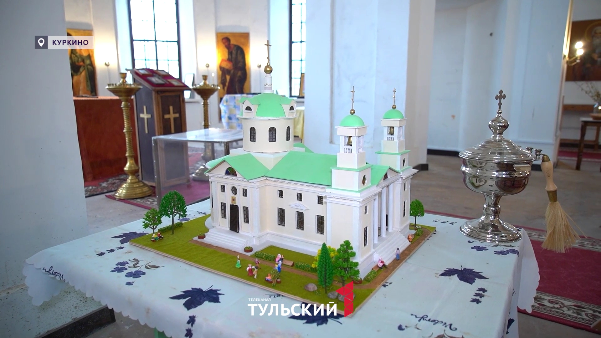 Двухколокольный, с зелеными крышами, белёный, без фресок, но с красивой лепниной внутри. Таким был храм святой Екатерины в селе Ивановское - ныне поселке Грибоедово - в Куркинском районе два столетия назад. Сейчас о былом величии напоминает только макет. Смастерили его по просьбе военного врача, подводника Владимира Тишкина. Именно он обратил внимание на развалины в поселке. Здесь он купил дачный домик и решил храм восстановить. Узнал, что сюда приезжали художники, писатели, в том числе Александр Грибоедов, в честь которого и переименовали поселок. Местные сначала удивились такой инициативе, но сразу ее поддержали.