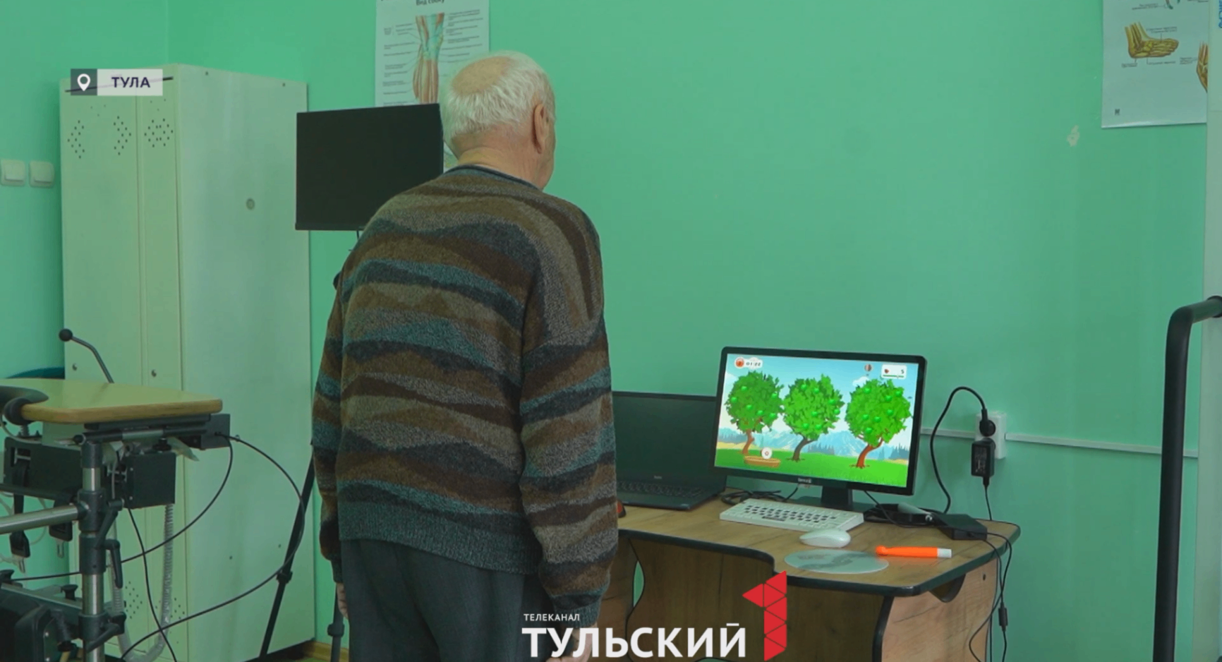 В кардиодиспансере мужчина восстанавливается уже 2 месяца. Кроме беговой дорожки – в его расписании баланс-тренер. Это оборудование для проработки мышц-стабилизаторов. Тренировка проходит в игровой форме. Но кроме развития мускулатуры она укрепляет еще и нейронные связи. Человек работает корпусом тела и выполняет задания на мониторе компьютера. В данном случае – ловит яблоки в корзинку. Всего в этом кабинете 5 тренажеров. Один из них – новый. Тренировки на нем вот-вот включат в обходной лист пациентов.