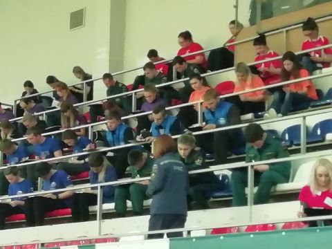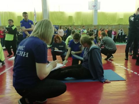 Состязались ребята в 3 этапах: письменное тестирование, оказание первой помощи и психологической поддержки, а также обучение этим приемам. Так, например, одно из заданий – помочь человеку с травмой головы и одновременно успокоить свидетеля происшествия.