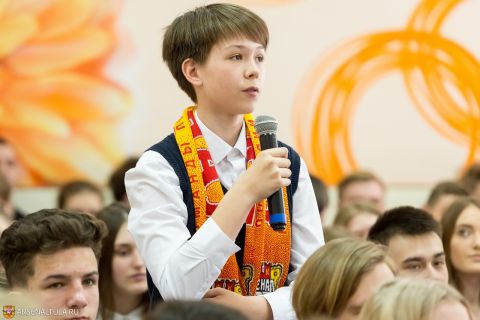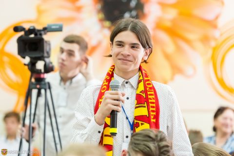 Более ста школьников собрались в актовом зале, чтобы пообщаться с футболистами и взять у них автографы. После официальной части, каждый из игроков рассказал, как добиться успеха.
