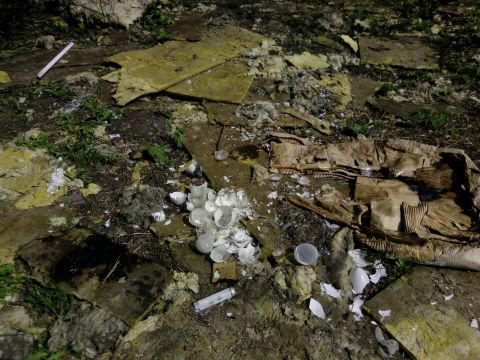 Ее высота достигает двух метров, осколки повсюду. От этого места чуть меньше километра находится родник. Оттуда люди берут воду.