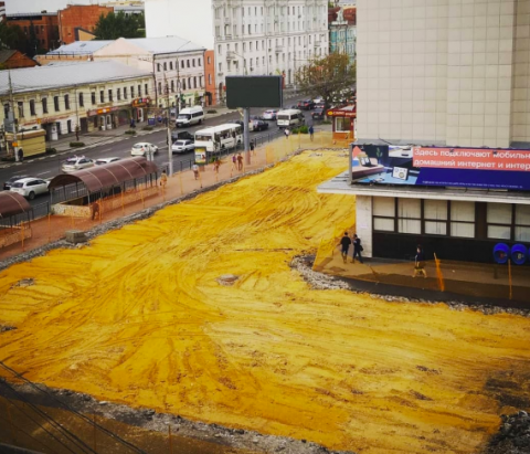 Площадь у Главпочтамта превратилась в «песчаный берег». Туляки в интернете шутят: