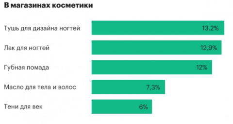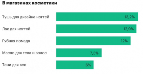 В магазинах косметики – тушь для дизайна ногтей. Об этом сообщает РБК.