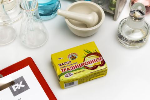 Сливочное масло "Родная кухня" "Традиционное". В нем показатели безопасности даже не определяли. Образец сняли с экспертизы как фальсификат.