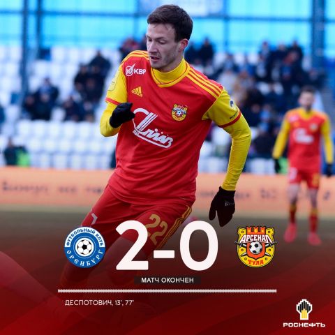 Первый гол влетел в ворота туляков на 14-й минуте от Деспотовича после ошибки вратаря Михаила Левашова. А второй на 78-й минете – за тем же Деспотовичем недоглядели защитники канониров. Кроме того, на 75-й минуте за вторую желтую поле покинул Бауэр.