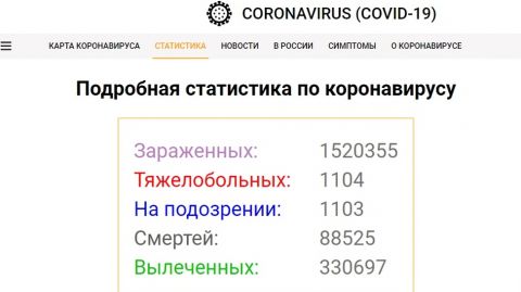 На момент публикации в мире насчитывается 1522475, вылечились 331354, умерли 88574 (по данным сайта coronavirus-monitor).