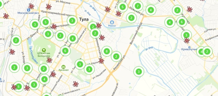 Интерактивную карту с активными очагами инфекции разработали в правительстве Тульской области. На ней отмечены номера многоквартирных домов или улицы в частном секторе, где живут заболевшие. Но не отображаны адреса тех, кто уже скончался или выздоровел.