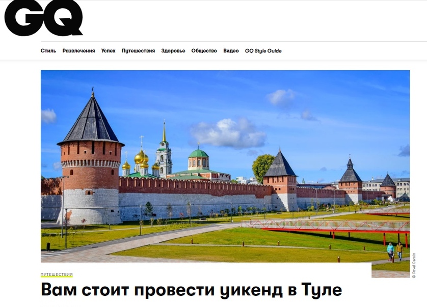 Журнал GQ составил большой путеводитель по Туле и области. В него вошли кремль XVI века, музеи «Тульские самовары» и Музей международного пряника, прогулка по Казанской набережной и по пространству «Искра».