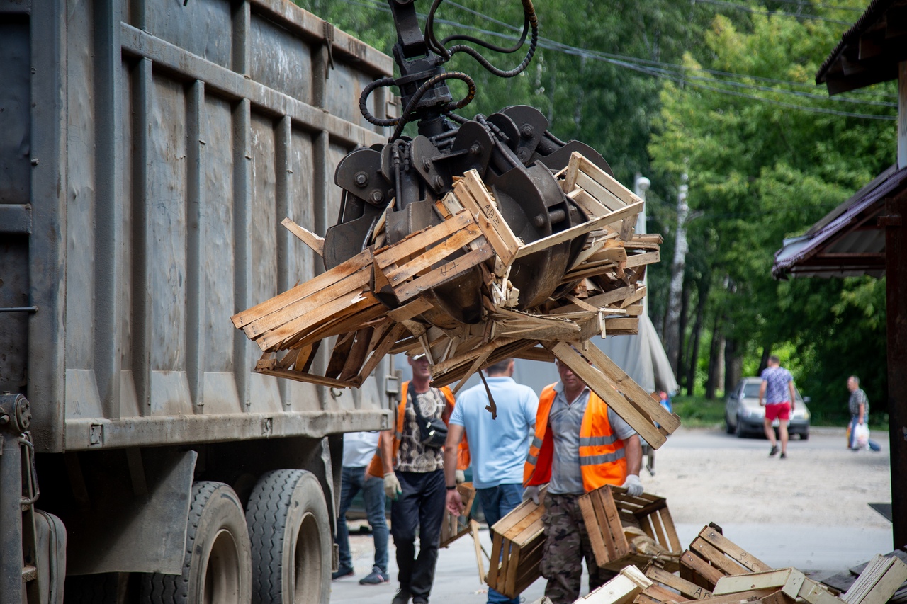 Участок улицы в районе остановки поликлиника жители используют для продажи грибов ягод и овощей с личных приусадебных хозяйств. При этом продукцию раскладывают на подстилках и фанерных ящиках, нарушая санитарные нормы и правила. Импровизированные прилавки демонтировали и вывезли на двух бортовых «Камазах».
