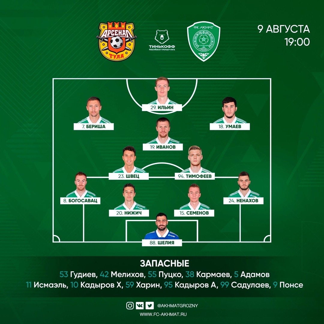 Первый футбольный матч нового сезона "Арсенал"- "Ахмат" стартовал. В составе канониров играют: