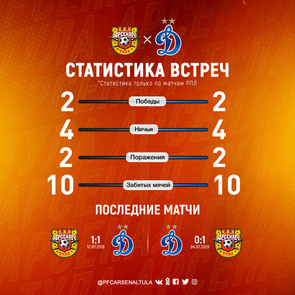 Сейчас «Динамо» - один из лидеров чемпионата: команда два раза одержала победу, один раз сыграли вничью и пока идет на втором месте. «Арсенал» после двух поражений находится на 14 строчке в турнирной таблице. Ранее «Первый Тульский» сообщал, что главный тренер оружейников может покинуть команду в случае третьего проигрыша подряд.