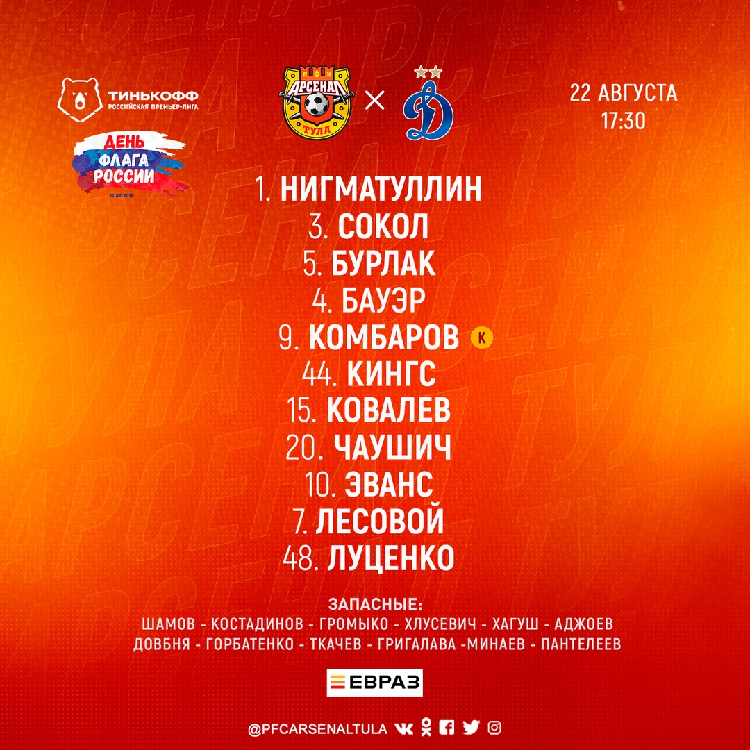 Публикуем также стартовый состав тульской команды, заявленный на игру: