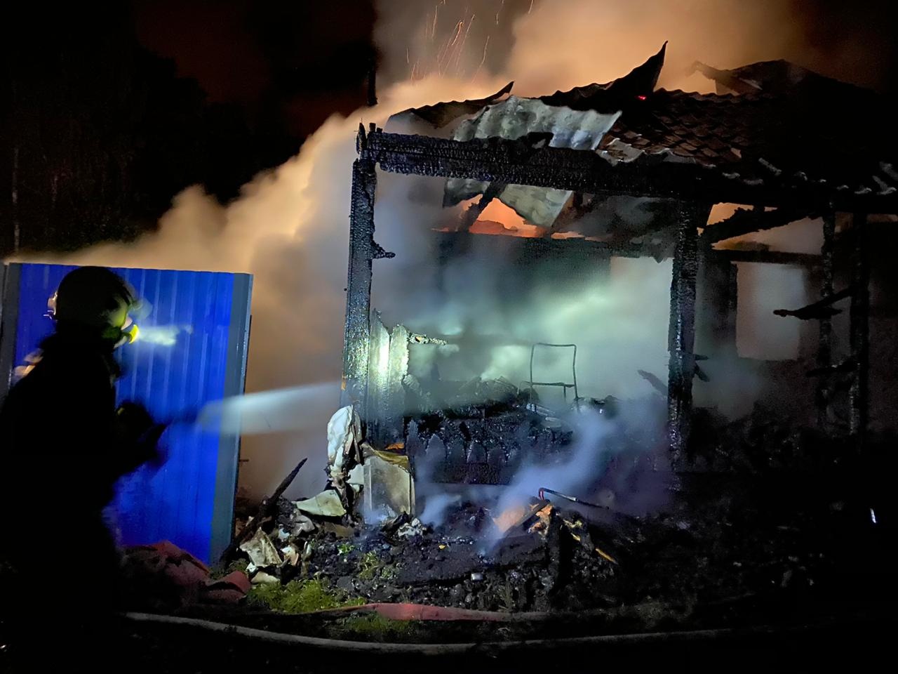В результате происшествия дачный дом сгорел полностью. В огне пострадала 44-летняя женщина – у нее ожог кисти. Также обгорел стоящий рядом автомобиль «Мазда СХ-6»: у него лопнуло лобовое стекло, оплавилось лакокрасочное покрытие, передний бампер и фара.