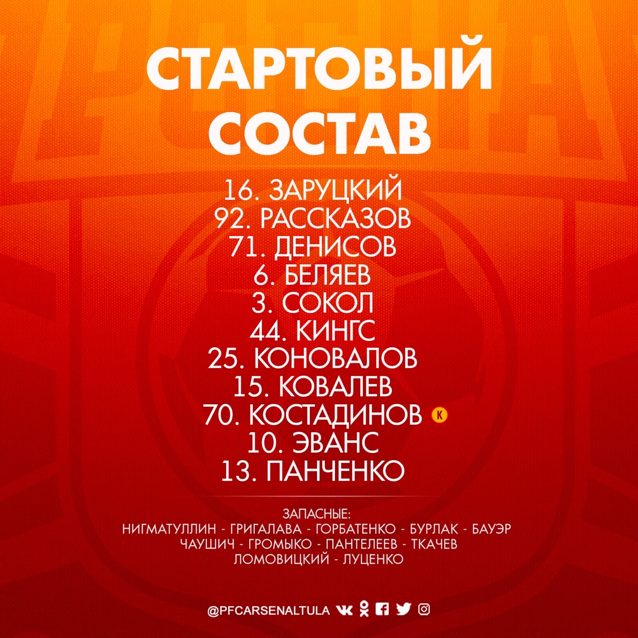 Публикуем стартовый состав тульской команды: