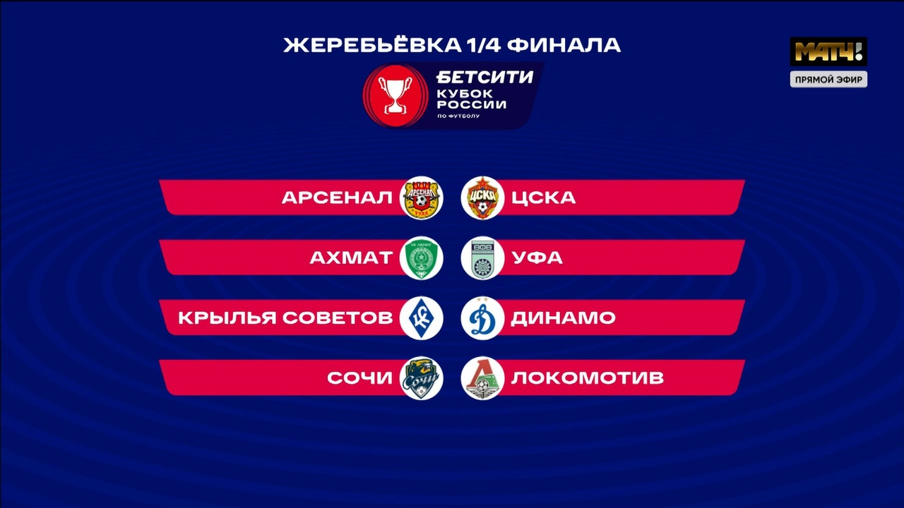 Тульский «Арсенал» по итогам жеребьевки следующий матч проведет дома против столичного ЦСКА. Матчи Кубка России состоятся уже 7 -8 апреля этого года.