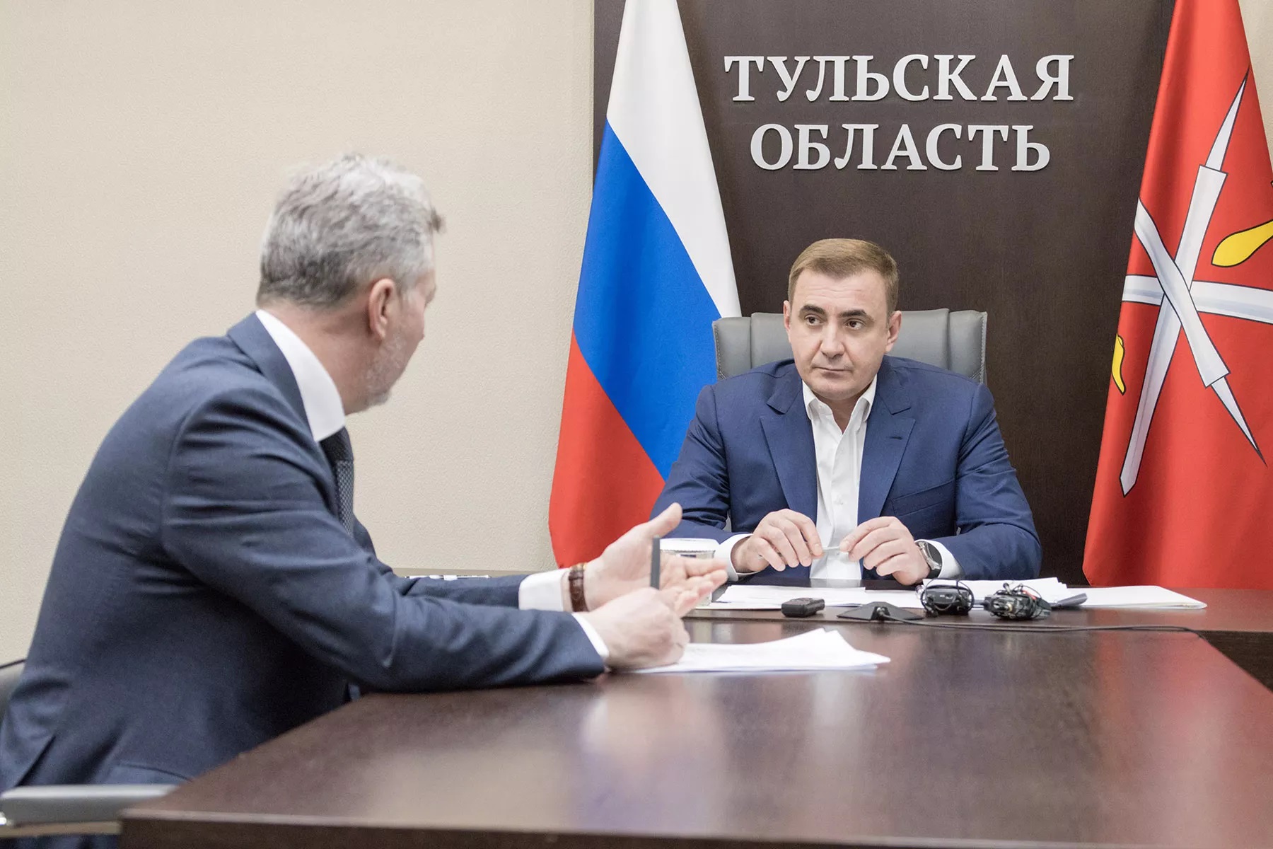 Сегодня, 31 марта, Губернатор Алексей Дюмин провел рабочую встречу с председателем Счетной палаты Тульской области Владимиром Юдиным.