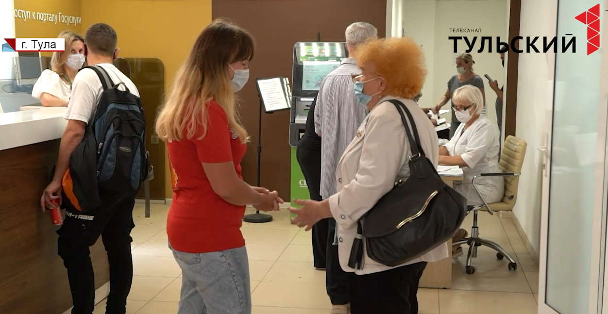 После ужесточения антиковидных мер нагрузка на пункты вакцинации значительно возросла. Так, если раньше прививочный кабинет МФЦ в Туле на Октябрьской принимал в день около 150-ти человек, то теперь - в четыре раза больше. Потому и отправляются волонтёры в самые загруженные места. Активисты ресурсного центра по развитию добровольчества встречают посетителей, следят за соблюдением социальной дистанции, заполняют документы, формируют живую очередь и разделяют потоки людей.