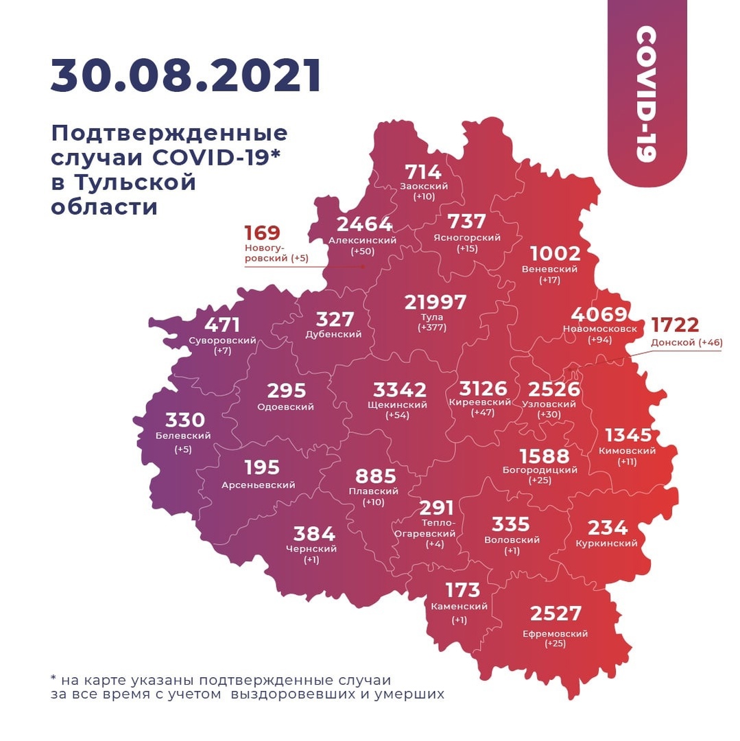 Также, за указанный период времени в Тульской области зафиксировали 835 новых случаев заражения вирусом COVID-19. Новых случаев не зафиксировали только в четырех муниципальных образованиях региона – в Арсеньевском, Дубенском, Куркинском и Одоевском районах. За все время коронавирусом заболели 51 248 жителей Тульской области.