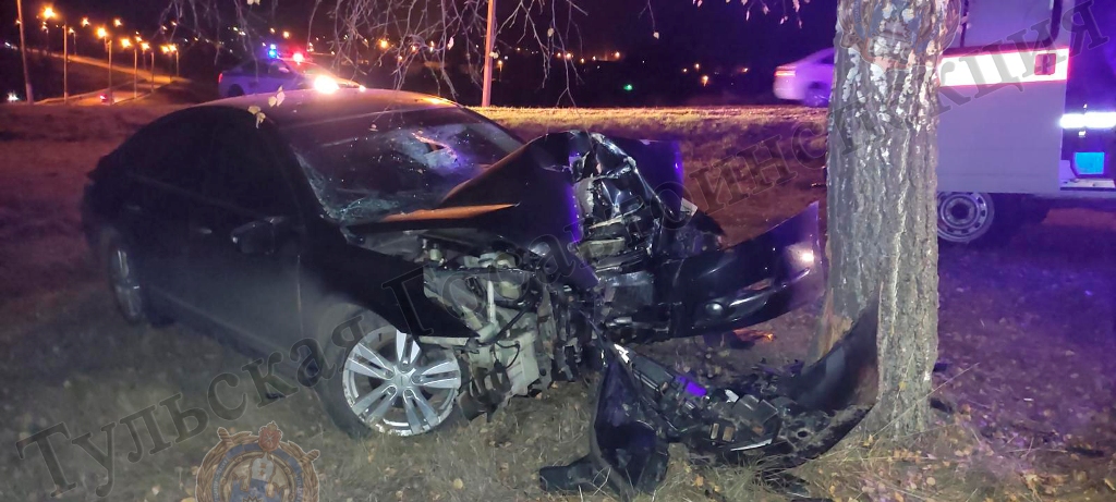 Под Киреевском водитель Nissan Teana погиб, врезавшись в дерево.