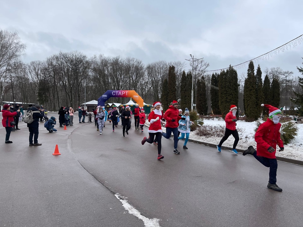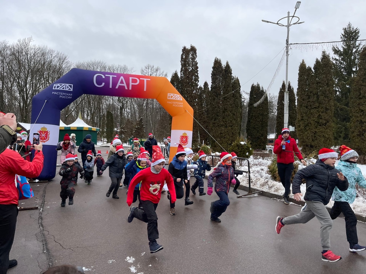В Туле прошёл забег дедов Морозов. Участие в нем бесплатное. Единственное требование - у каждого должен был быть новогодний атрибут: костюм Деда Мороза или красный новогодний колпак. Тем, у кого его не было - организаторы выдавали бесплатно. В забеге приняли участие около ста человек. Самому младшему участнику было 9 месяцев. Он преодолел дистанцию на коляске вместе со своим старшим братом.