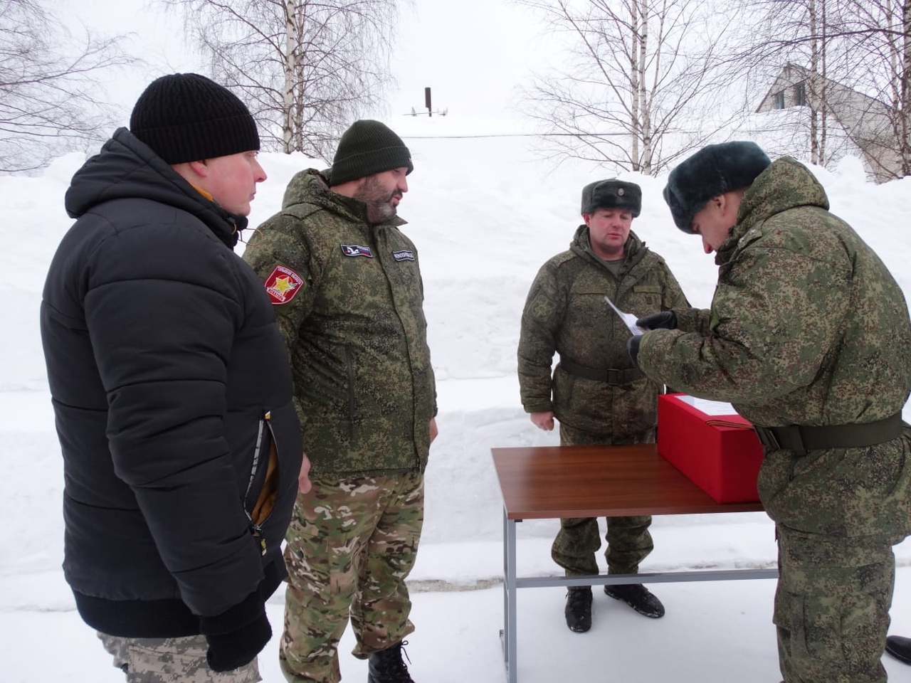 В торжественной обстановке служащие передали останки туляка представителям поисковых объединений "ВЫСОТА" , "ЦИТАДЕЛЬ" и "Безмолвие", которые приняли и доставили их для захоронения на малой родине.