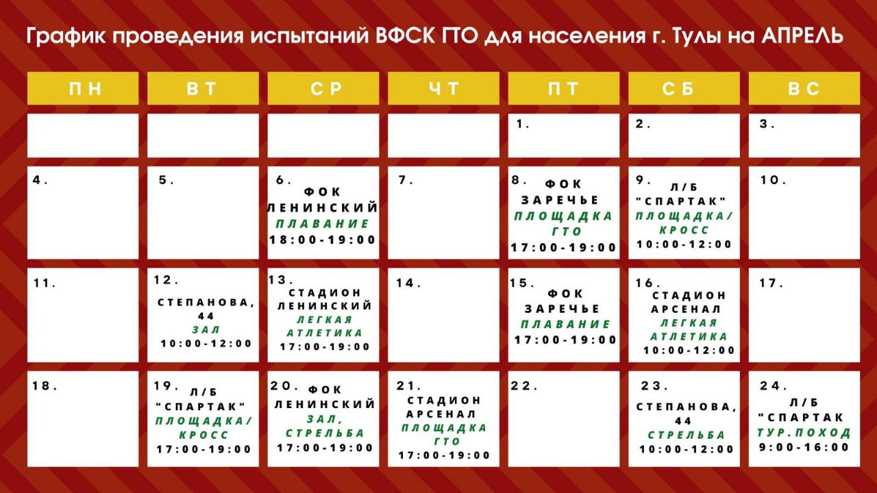 Тулякам прелагают пройти испытания Всероссийского физкультурно-спортивного комплекс «Готов к труду и обороне» в апреле.