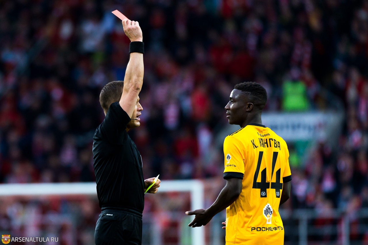 Напомним, 10 апреля в матче 24-го тура Российской Премьер-лиги тульский «Арсенал» уступил московскому «Спартаку» со счетом 3-0. Несмотря на разгромный счет, действия главного арбитра встречи Владислава Безбородова вызвали множество споров. Так, на 26-й минуте арбитр из Санкт-Петербурга отменил гол Уроша Радаковича, а в концовке игры показал Кингсу вторую желтую карточку за исполнение штрафного без свистка.