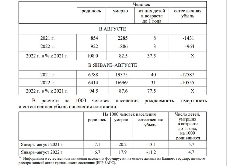 По данным ведомства, численность региона изменилась за счет разницы в рождаемости и смертности.