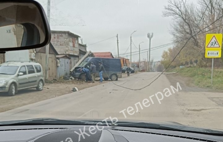 Предположительно, водитель фургона "Форд Транзит" на скорости не справился и управлением, вылетел с дороги и врезался в бетонный столб. Обломки конструкции повредили автомобиль "Лада Ларгус", который был припаркован неподалеку.