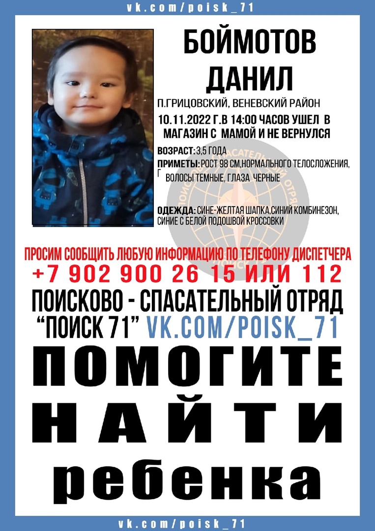 10 ноября в 14 часов в поселке Грицовский Веневского района мать с сыном ушли в магазин и не вернулись.