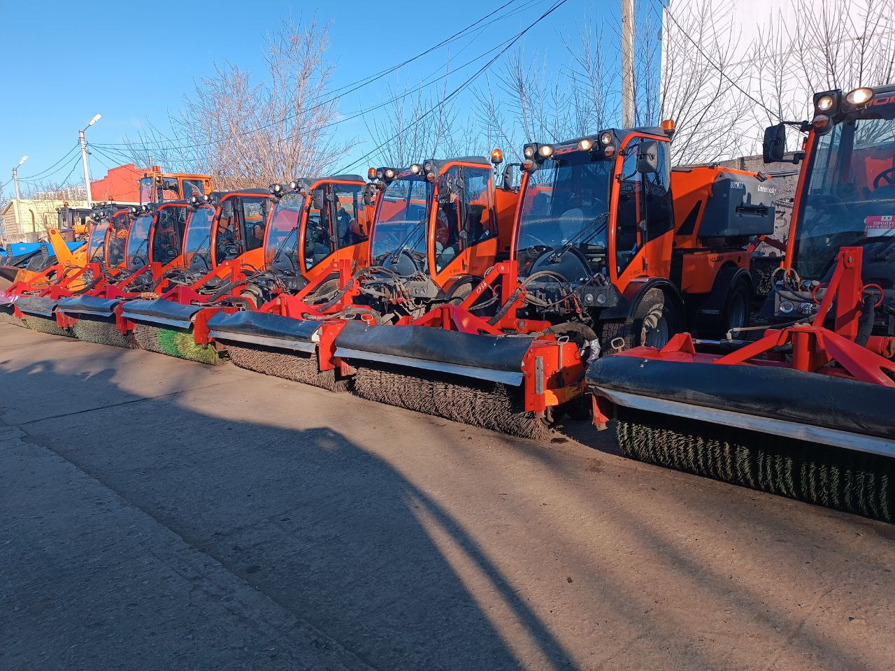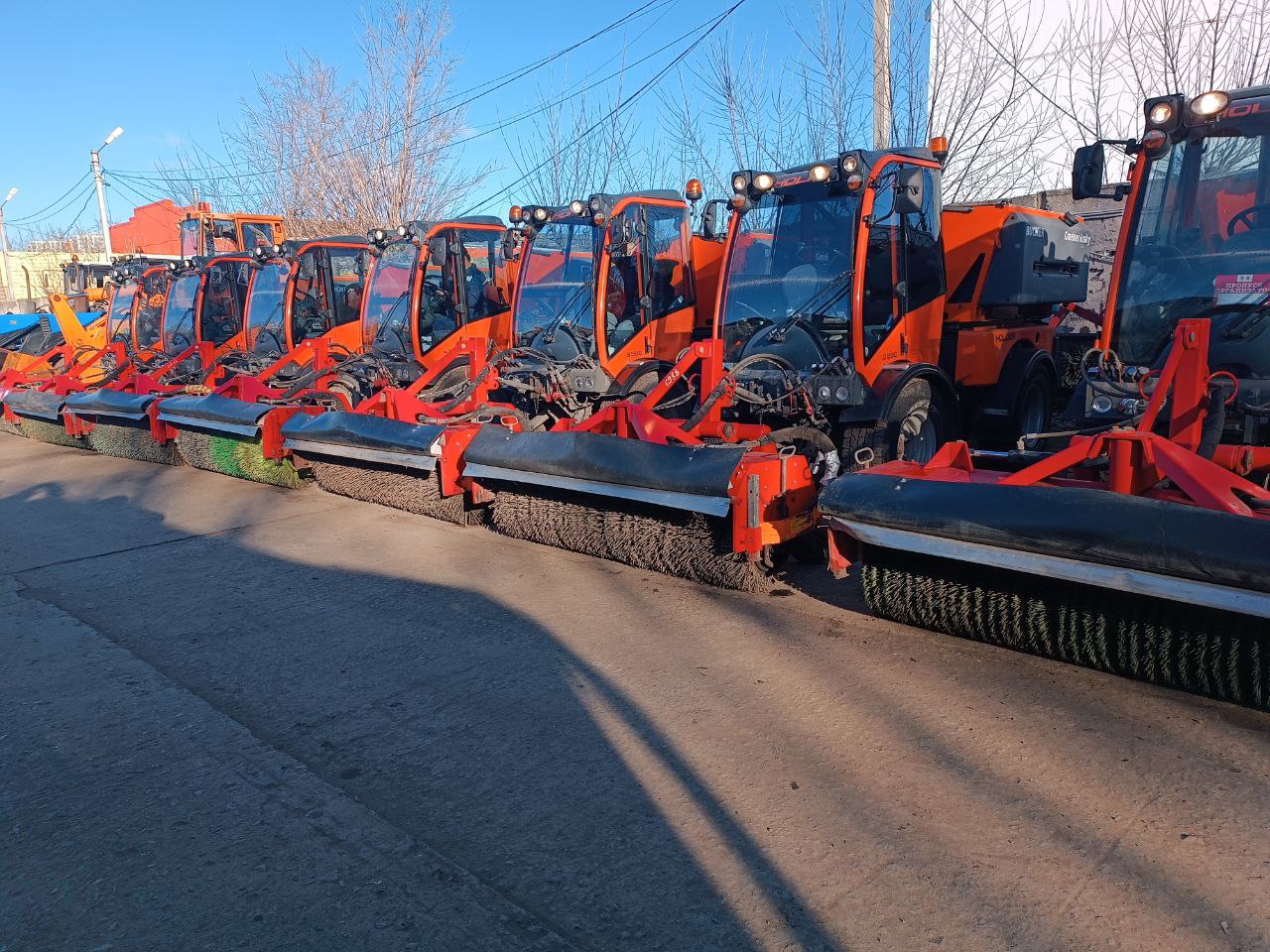 Больше всего в сервисном центре так называемых "холдеров" - небольшие подметальные машины. Городские тротуары они убирают со скоростью 5-7 км в час, за день расчищают 4-5 улиц.