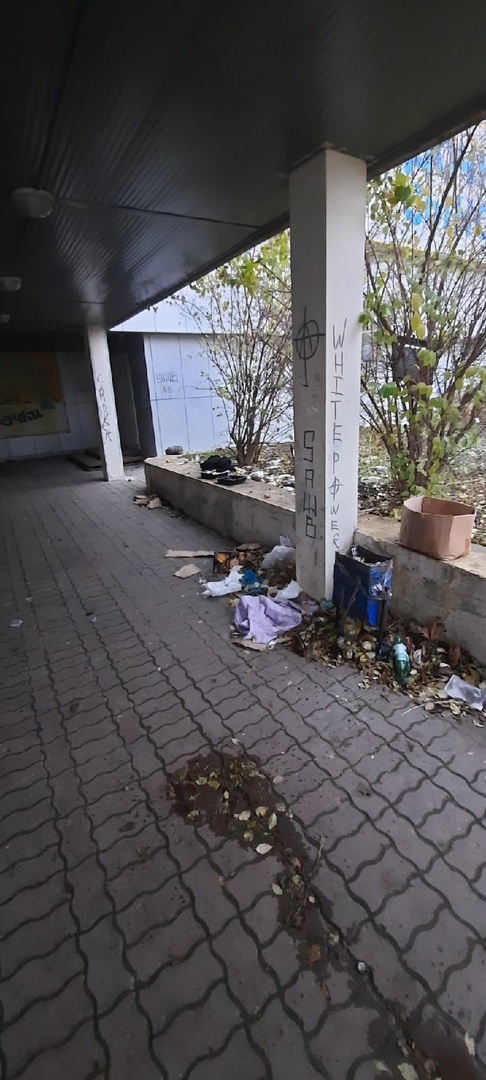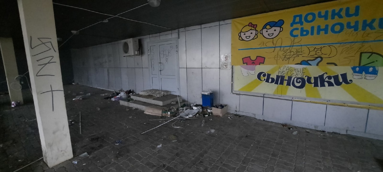 Жители Зареченского округа Тулы пожаловались в соцсетях на грязь и бомжей возле бывшего ТЦ на улице Пузакова, д.13.