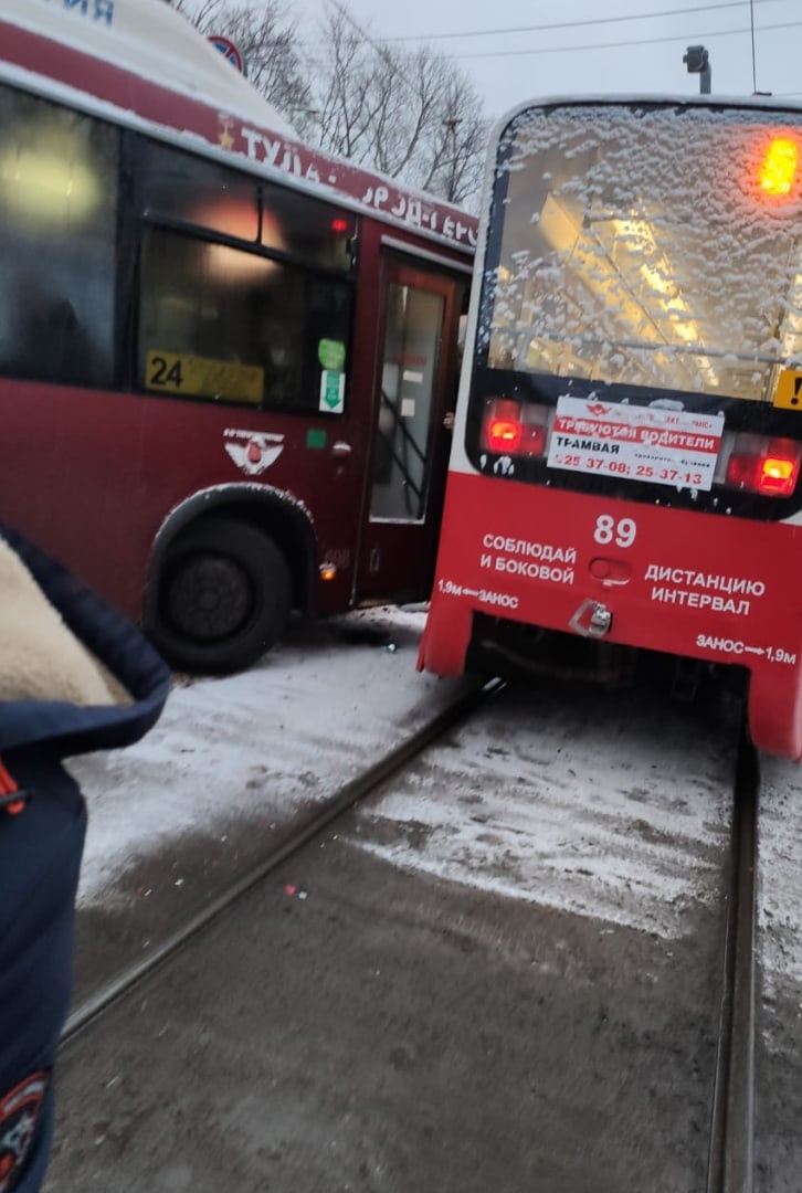 В Туле не поделили дорогу автобус и трамвай. Авария произошла утром 16 ноября, в Криволучье, в районе остановки Доватора.