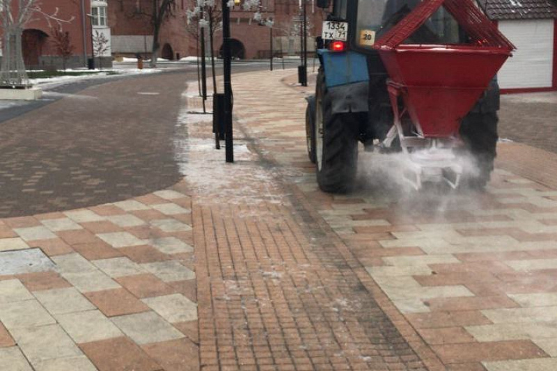 70 машин и 190 рабочих обрабатывают улицы Тулы противогололедными материалами