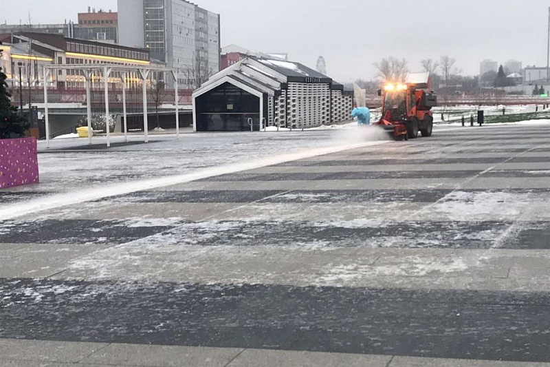 Ночью работали 70 единиц техники и 10 рабочих. Машины посыпали магистральные, центральные и второстепенные улицы и тротуары.