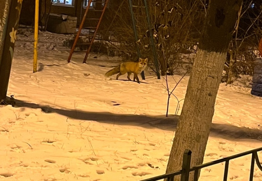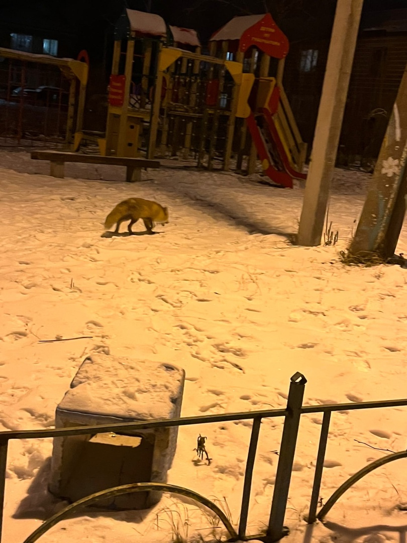 Жители поселка Заокский встретили лису на детской площадке