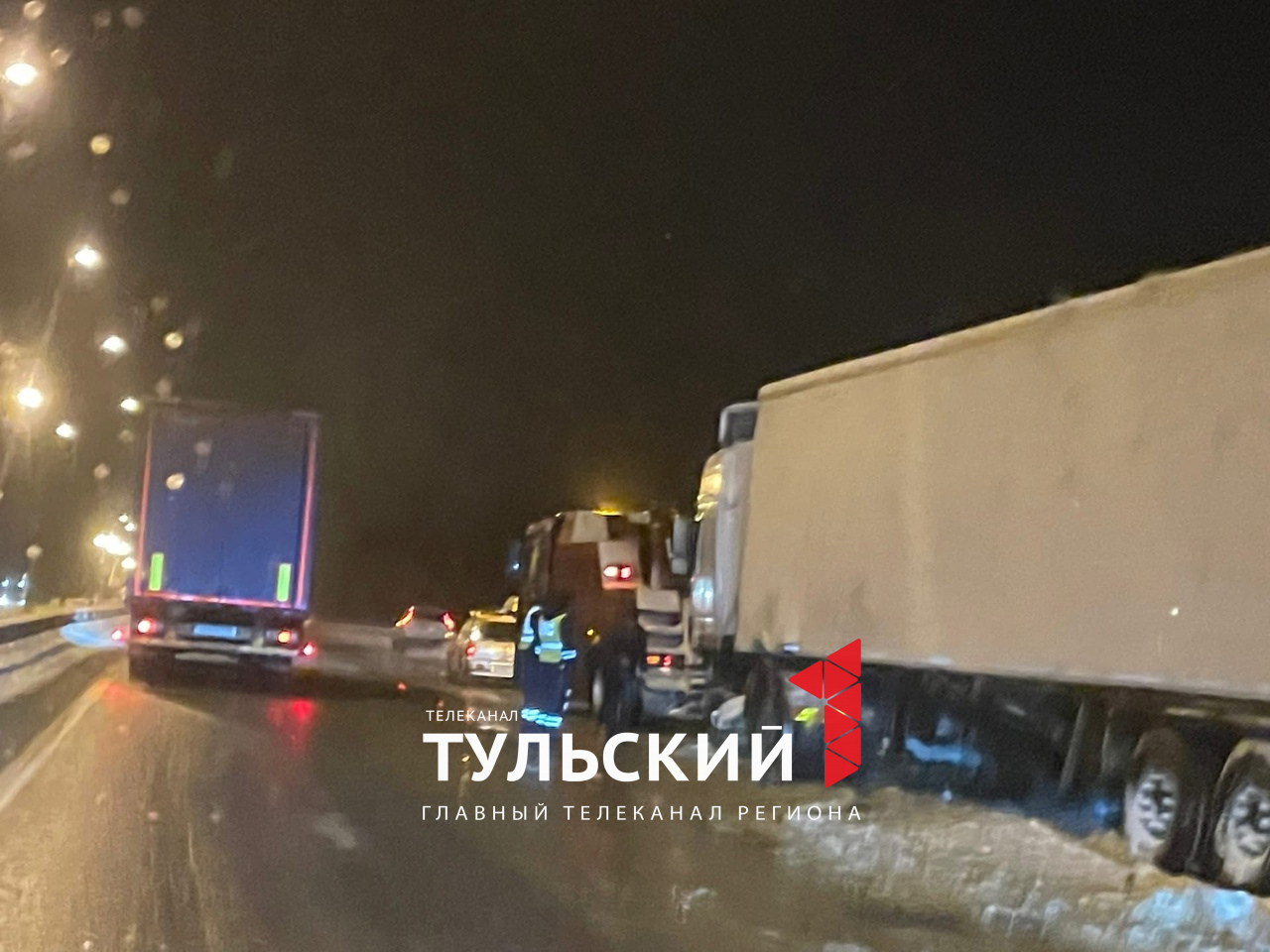 На 127-ом км на трассе М-2 под Тулой фура съехала в кювет и создала затор