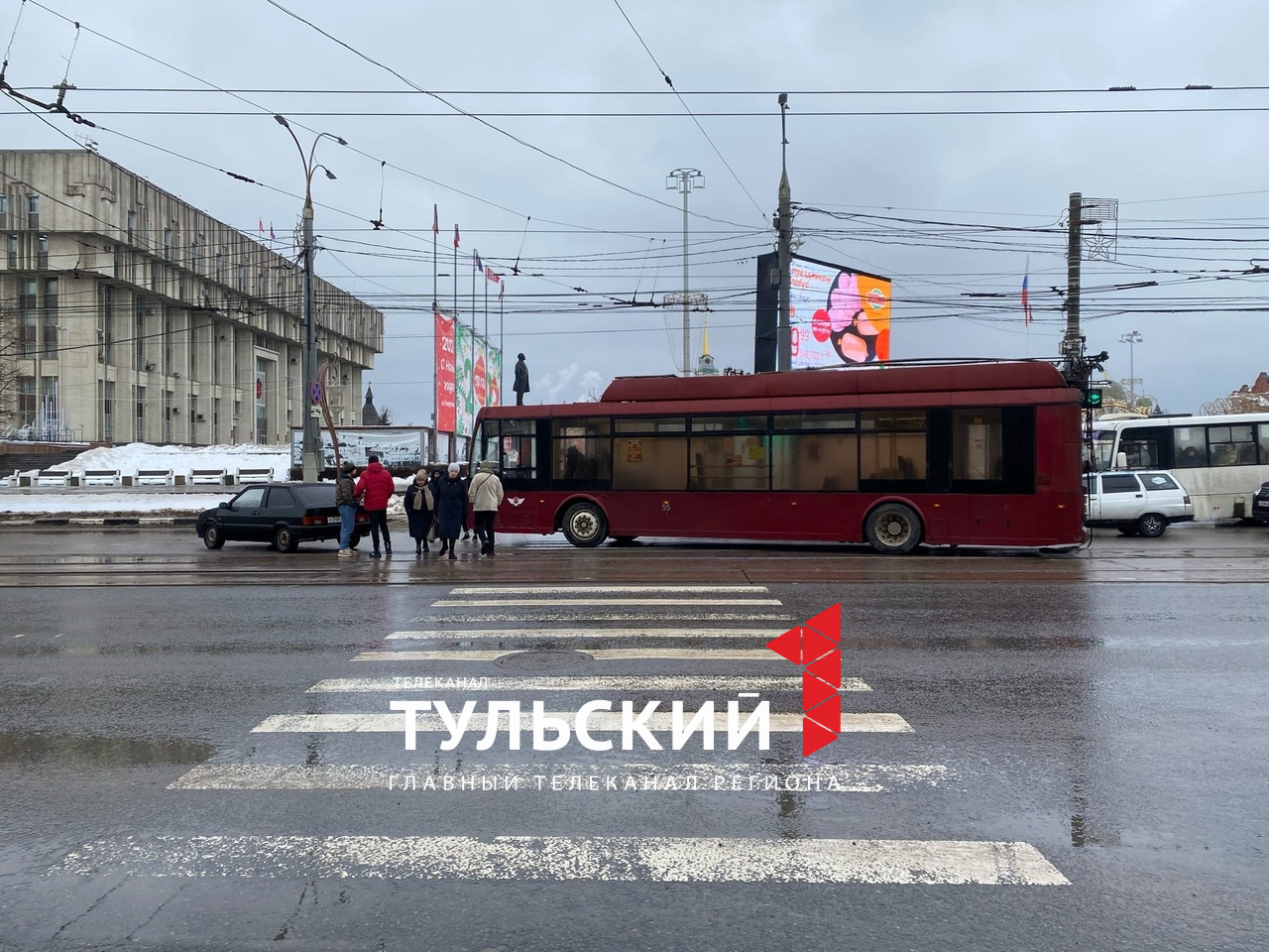 В районе пересечения улицы Советской и проспекта Ленина возле здания Правительства дорогу не поделили троллейбус и «ВАЗ». Об этом очевидцы сообщили в редакцию «Первого Тульского». Свидетели прислали фото с места происшествия.