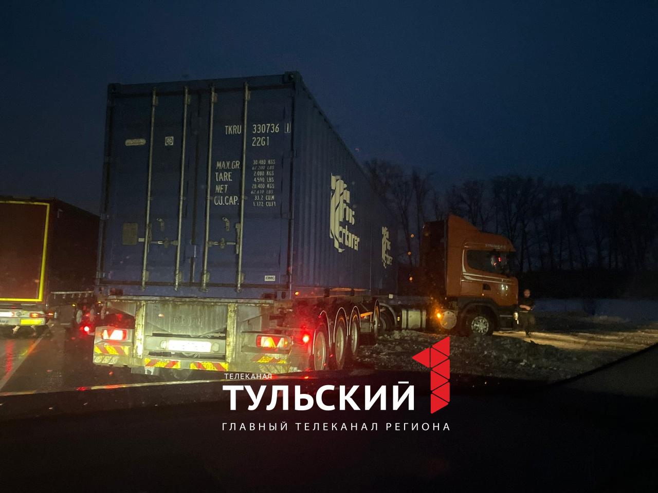 Ситуацию на дороге усложнил водитель фуры, который попытался съехать на стоянку, но забуксовал в снегу. Большегруз заблокировал движение по одной из полос.
