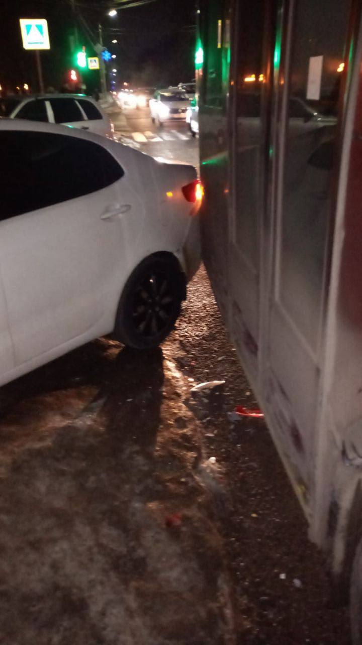 Пострадавших, по словам свидетелей происшествия, нет. На автобусе повреждено ЛКП.