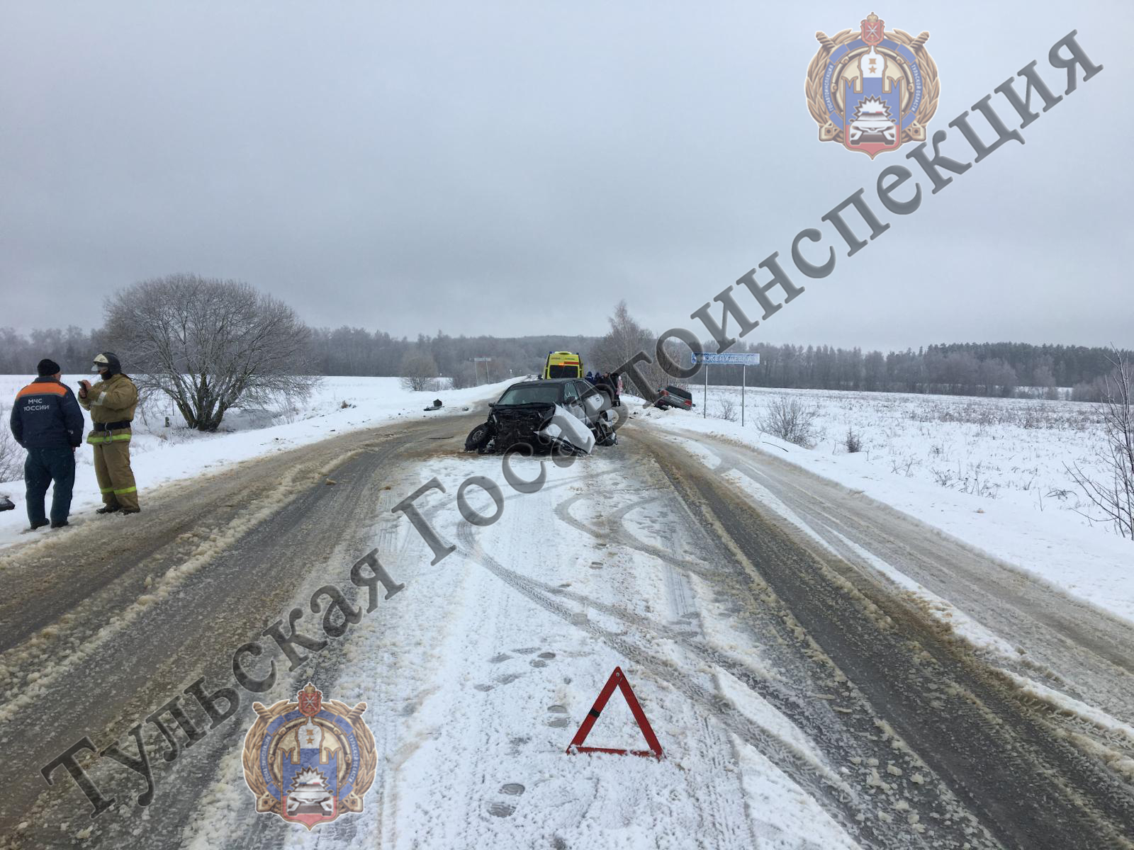 В 9.50 на 20-м километре автодороги «Алексин-Першино» 63-летний водитель Chery А15, по предварительной информации, выехал на встречную полосу и врезался в Kia Sorento, за рулем которой была 46-летняя женщина. Из-за столкновения Kia улетела в правый по ходу движения кювет.