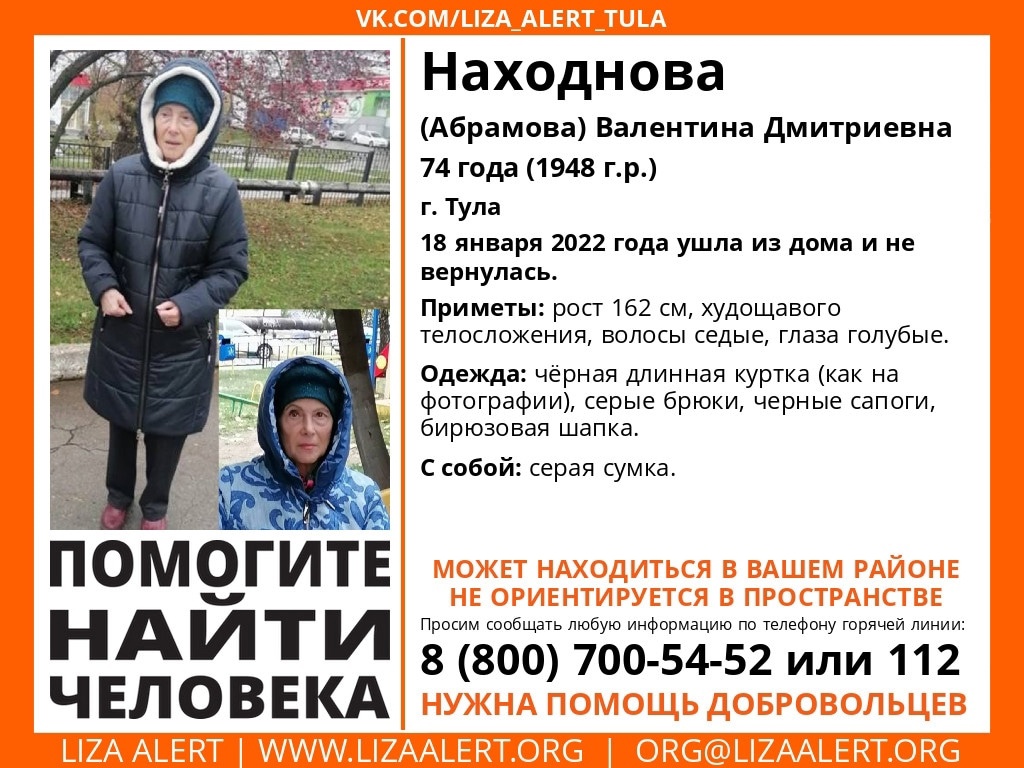 18 января 2023 года Находнова (Абрамова) Валентина Дмитриевна ушла из дома и не вернулась.