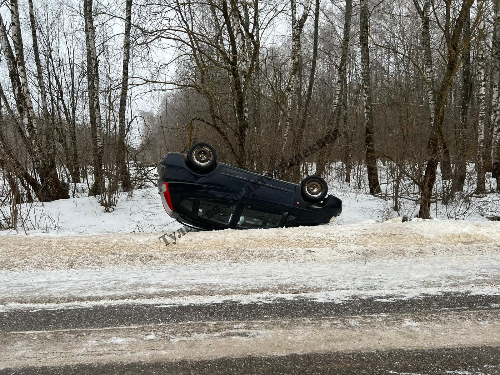 Под Алексином автомобиль вылетел с дороги и перевернулся