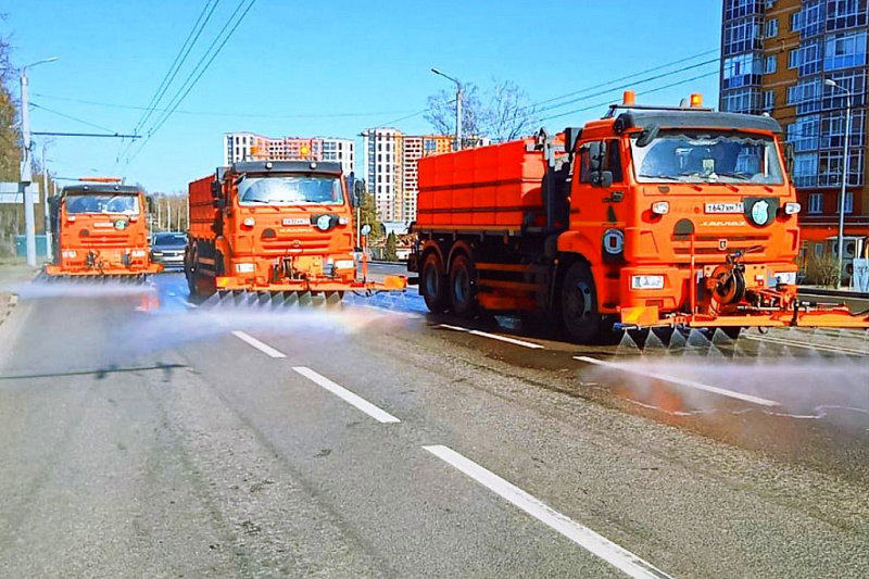 А мойка улично-дорожной сети комбинированной дорожной машиной проводится во всех округах города.