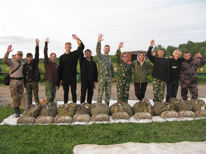 Старшая группа отряда «Витязь» имени Героя Советского союза Головина Ивана Васильевича Дубенской средней школы прыгнули с парашютом 10 июня.