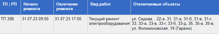 Отключение электричества вызвано плановыми ремонтными работами