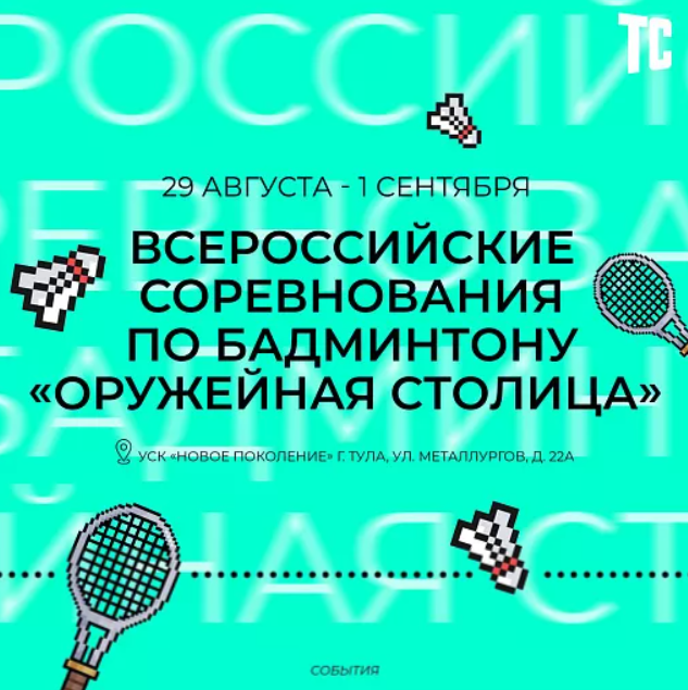 С 29 августа по 1 сентября в универсальном спортивном комплексе «Новое поколение» (Тула, улица Металлургов, дом 22а) пройдут Всероссийские соревнования по бадминтону среди юношей и девушек «Оружейная столица». На состязания съедутся более 250 спортсменов из разных регионов страны.