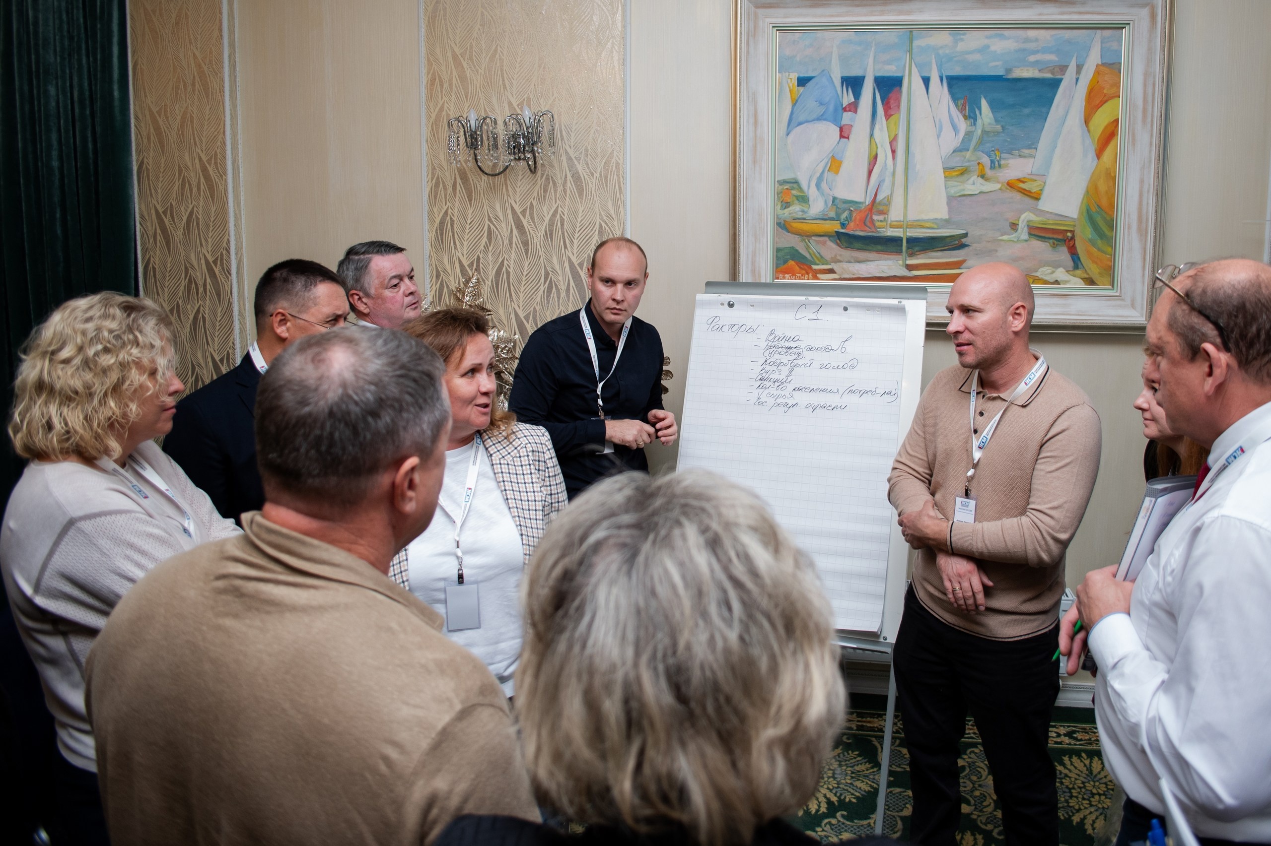 В первый день работы «Город Мастеров» принял участие в форсайт-сессии (технология прогнозирования будущего года и составление плана действий в различных вариантах развития событий). Опыт оказался интересным и полезным. Применив технику «мозгового штурма», собственники бизнеса и руководители мясокомбинатов определили негативный, основной и позитивный сценарии развития своих предприятий на следующие три года. Эти данные лягут в основу стратегии развития и бизнес-модели в условиях неопределенности и форс-мажорных внешних факторов.