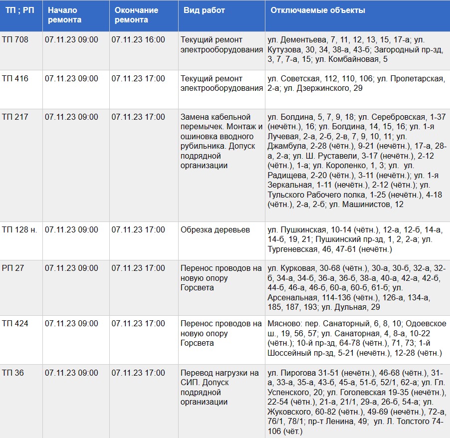 Подобные ремонтно-восстановительные работы проводятся регулярно. Мы сообщали об отключении света в Туле 31 октября.