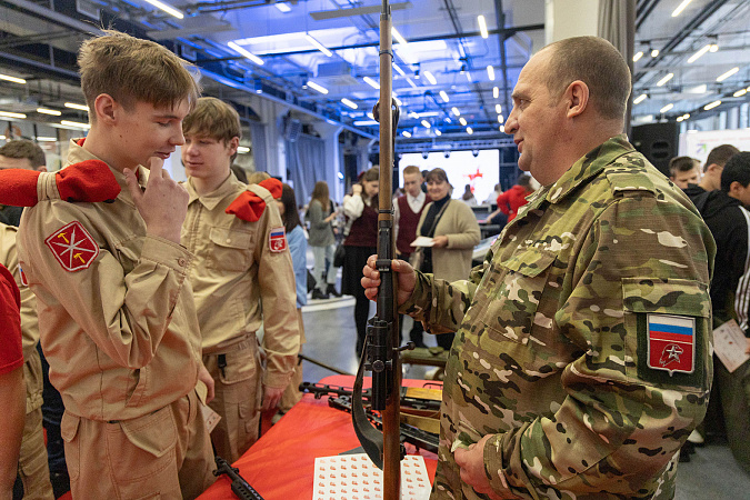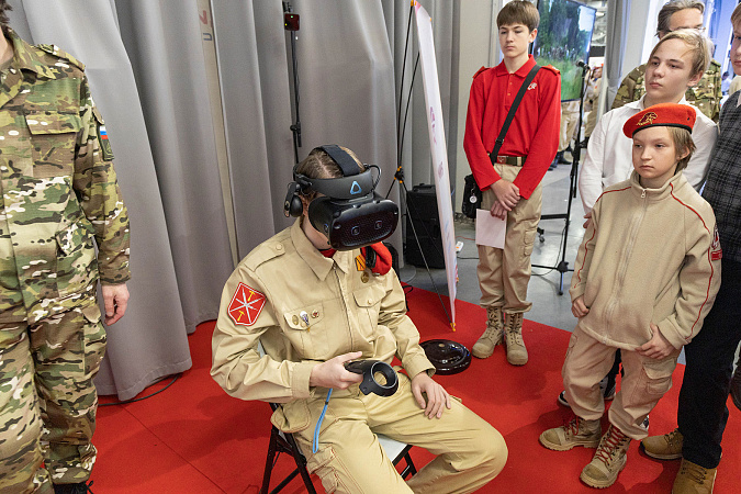 Сам по себе патриотический форум стал большой площадкой для детских увлечений и молодежных направлений. Так, не выходя из зала, можно было сплести маскировочную сеть, попробовать поиграть в VR-стрелялки, освоить мастерство публичных выступлений или азы робототехники.